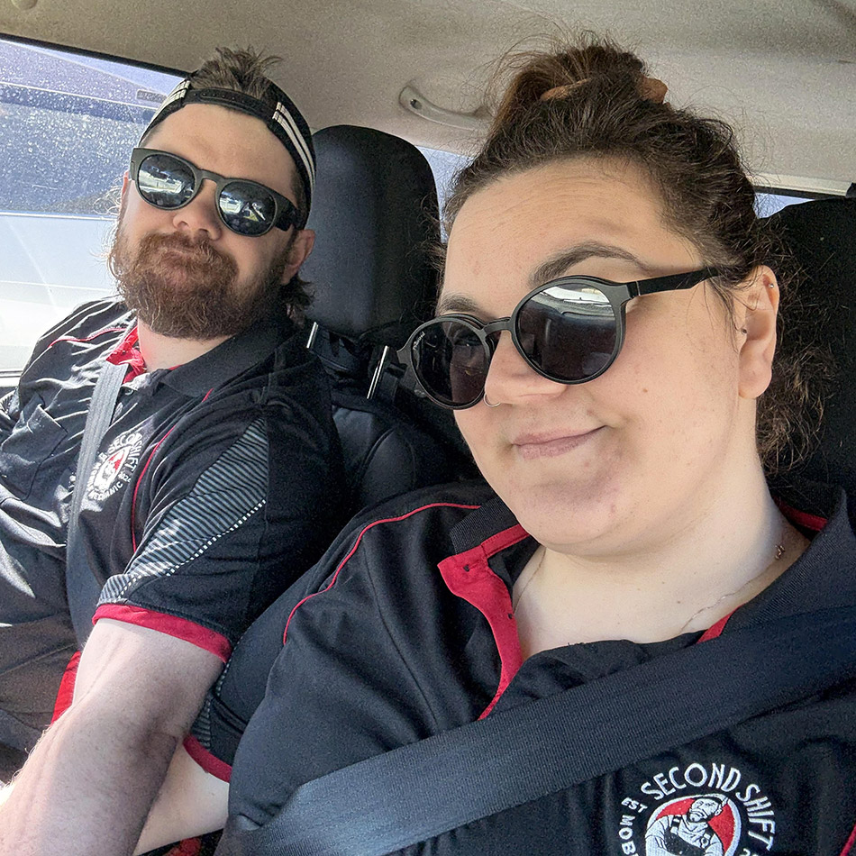 Hi! We’re Mat and Sophie, the husband-and-wife duo behind Second Shift Mechanical, a family-owned mobile mechanic service based in Logan.